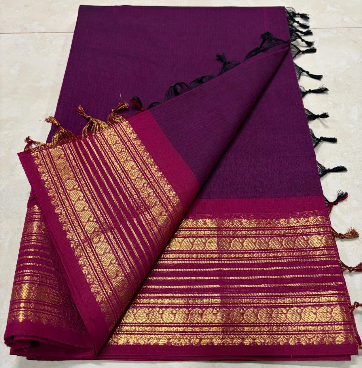 Our Kanchi Cotton Sarees reflect the elegance of classic Kanchipuram-inspired weaving combined with soft cotton comfort. Designed with subtle borders and timeless patterns, these sarees are ideal for workwear, casual outings, and small functions. They offer a graceful drape with long-lasting fabric quality.